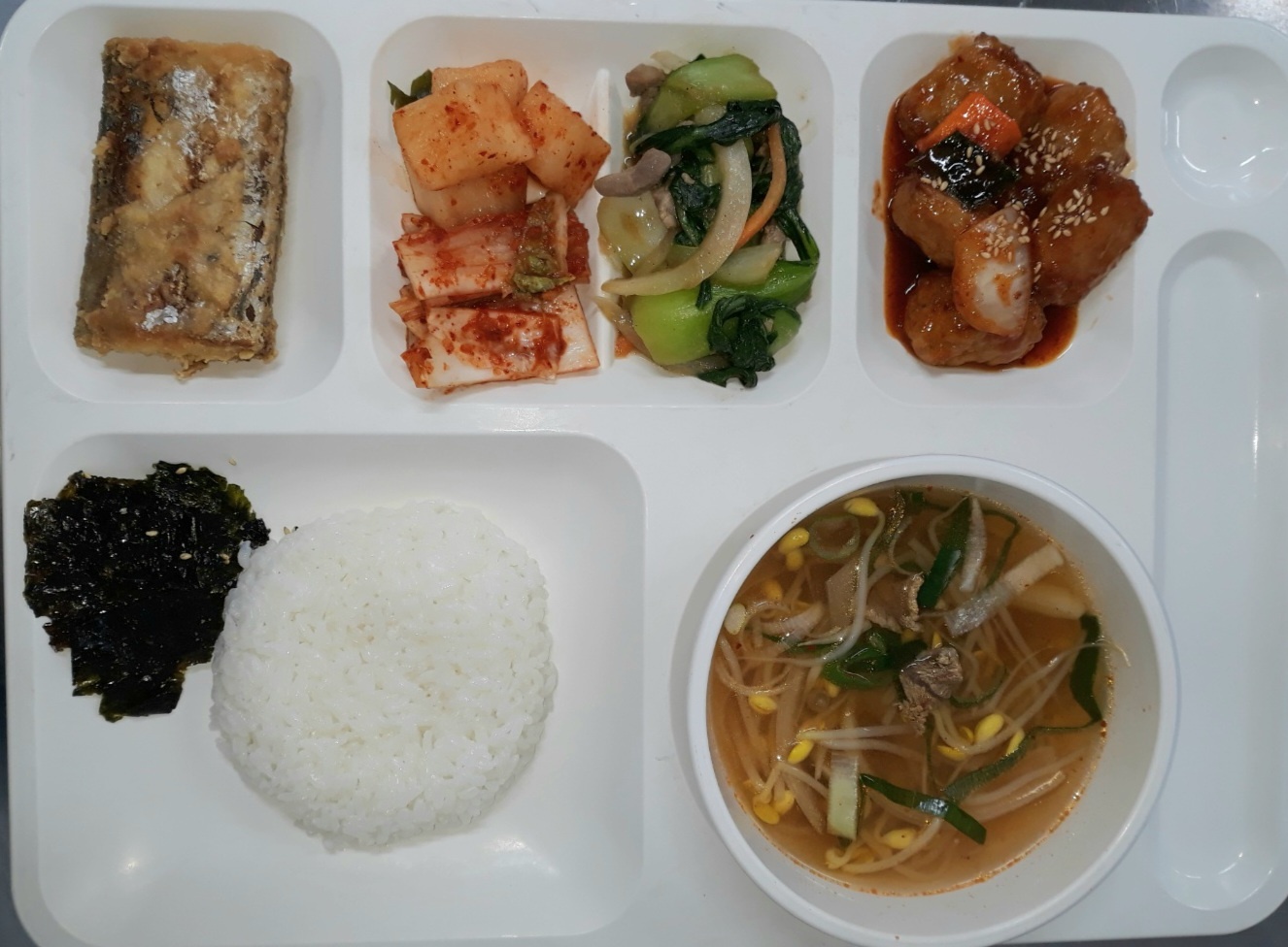 | 쌀 – 국내산 (현미, 찹쌀포함)/ 김치 – 배추김치 :국내산,고추가루:국내산 / 쇠고기 -국내산 닭고기 – 국내산 (훈제포함)/ 오리 – 국내산 (훈제포함)/ 돼지고기 – 국내산(등뼈,갈비,전지,후지,사태) 수산 – 삼치,고등어,오징어,굴비 (국내산)/ 명태,코다리(러시아산)/ 꽁치 (원양산)/낙지 (베트남산,중국산)/ 꽃게 (국내산) 날치알 (수입산), 새우살(베트남산)/ 진미채 (페루산), 쥐채(베트남산)/ 갈치(세네갈산)/ 가자미(러시아산) 참치캔(원양산)/ 가쓰오브시(인도네시아산) 콩 – 팩두부 (수입산)/ 연두부 (국내산)/ 순두부 (국내산) *시장 수급에 따라 메뉴는 변동될수 있습니다. |