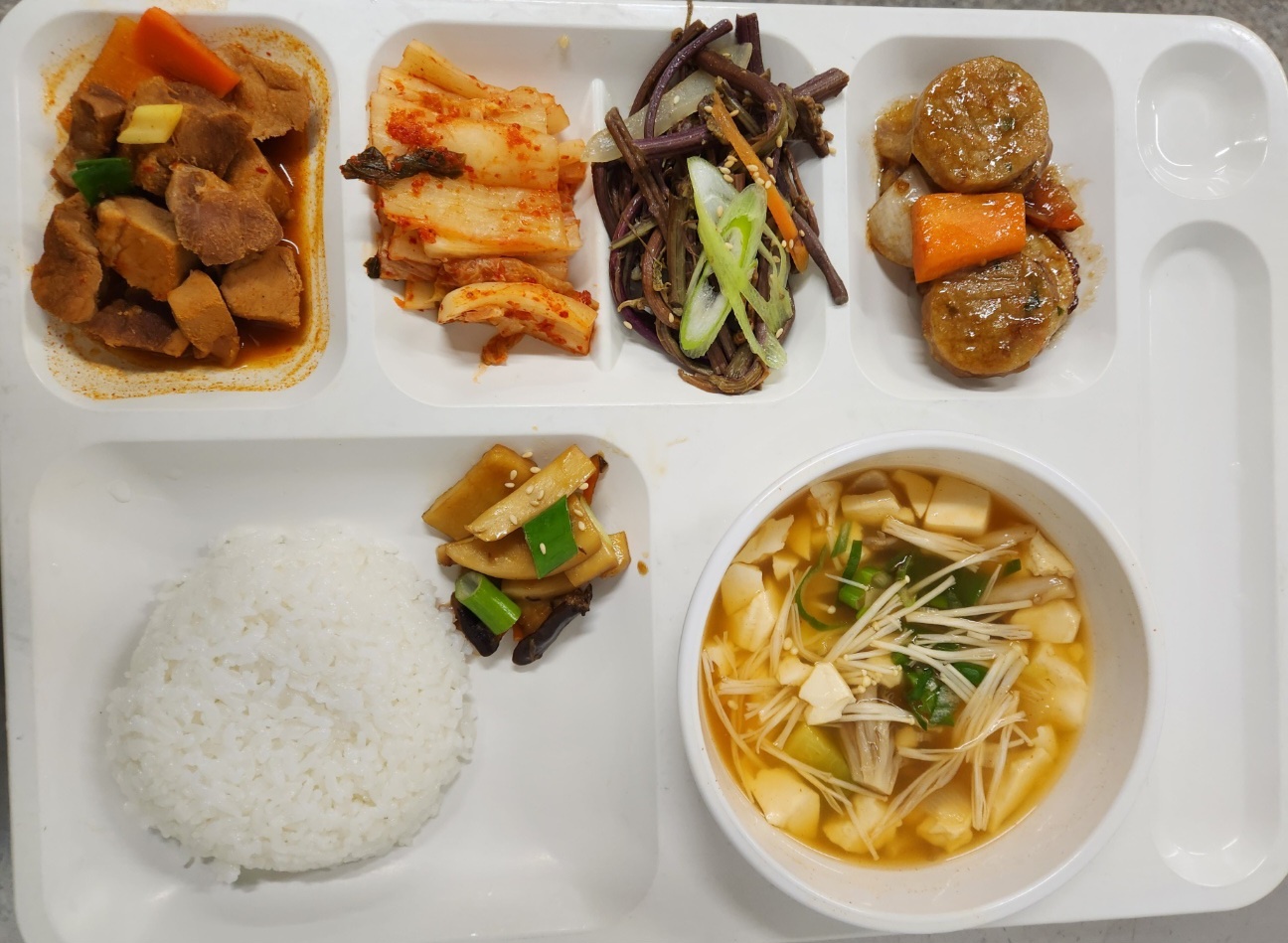 | 쌀 – 국내산 (현미, 찹쌀포함)/ 김치 – 배추김치 :국내산,고추가루:국내산 / 쇠고기 -국내산 ,닭고기 – 국내산 (훈제포함)/ 오리 – 국내산 (훈제포함)/ 돼지고기 – 국내산(등뼈,갈비,전지,후지,사태) 수산 – 삼치,고등어,오징어,굴비 (국내산)/ 명태,코다리(러시아산)/ 꽁치 (원양산)/낙지 (베트남산,중국산)/ 꽃게 (국내산) 날치알 (수입산), 새우살(베트남산)/ 진미채 (페루산), 쥐채(베트남산)/ 갈치(세네갈산)/ 가자미(러시아산) 참치캔(원양산)/ 가쓰오브시(인도네시아산) 콩 – 팩두부 (수입산)/ 연두부 (국내산)/ 순두부 (국내산) *시장 수급에 따라 메뉴는 변동될수 있습니다. |