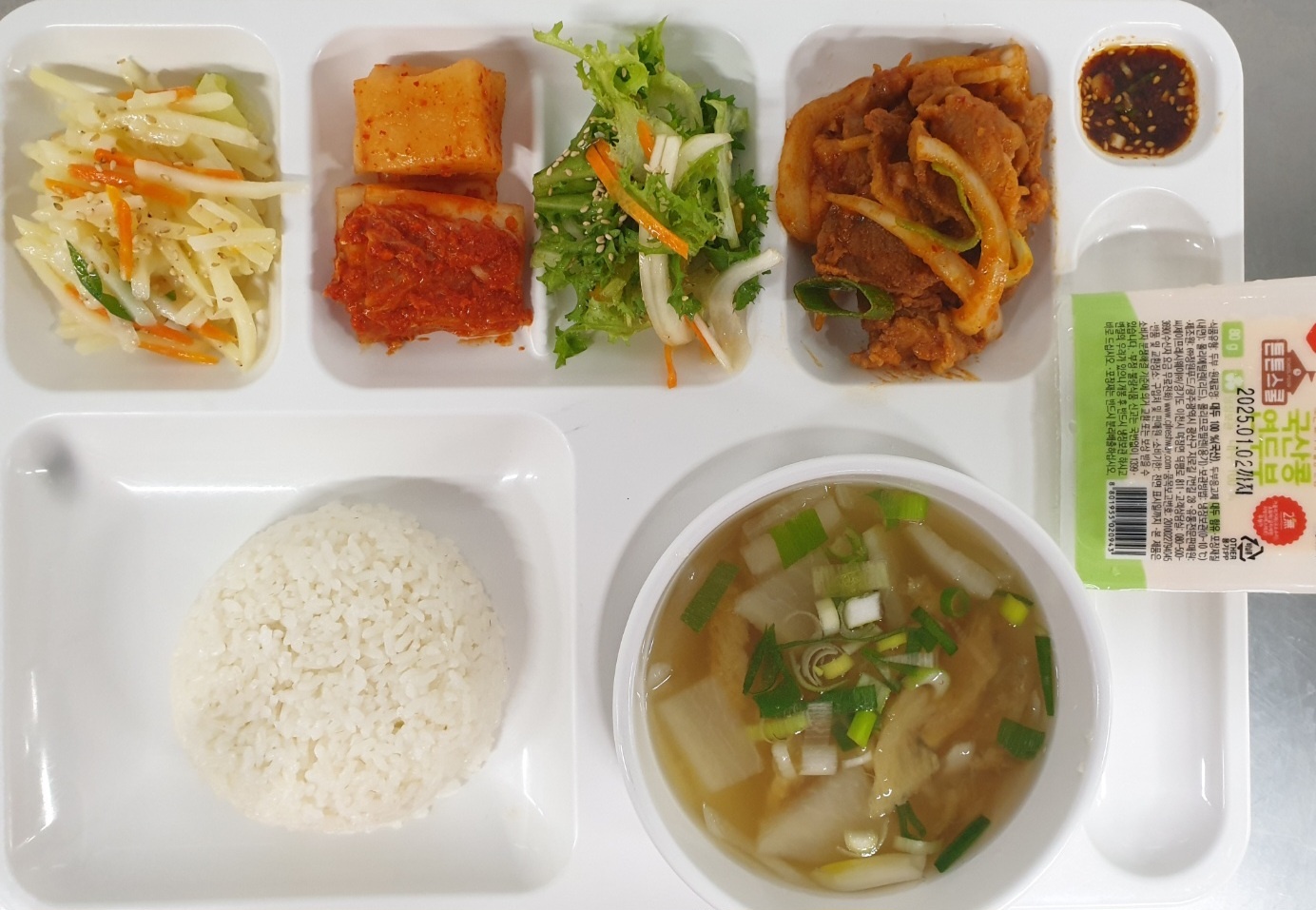 쌀 – 국내산 (현미, 찹쌀포함)/ 김치 – 배추김치 :국내산,고추가루:국내산 / 쇠고기 -국내산 ,닭고기 – 국내산 (훈제포함)/ 오리 – 국내산 (훈제포함)/ 돼지고기 – 국내산(등뼈,갈비,전지,후지,사태) 수산 – 삼치,고등어,굴비 (국내산)/오징어(국산,원양산)/ 명태,코다리(러시아산)/ 꽁치 (원양산)/낙지 (베트남산,중국산)/ 꽃게 (국내산) 날치알 (수입산), 새우살(수입산)/ 진미채 (페루산), 쥐채(원양산)/ 갈치(세네갈,모로코산)/ 가자미(수입산) 참치캔(원양산)/ 가쓰오브시(인도네시아산) 콩 – 팩두부 (수입산)/ 연두부 (국내산)/ 순두부 (국내산) *시장 수급에 따라 메뉴는 변동될수 있습니다. |