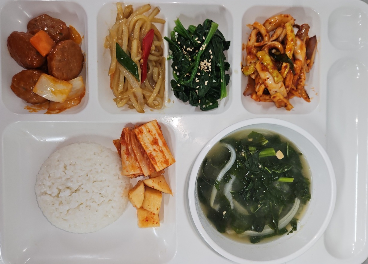 오징어무침/시금치나물/김치 |