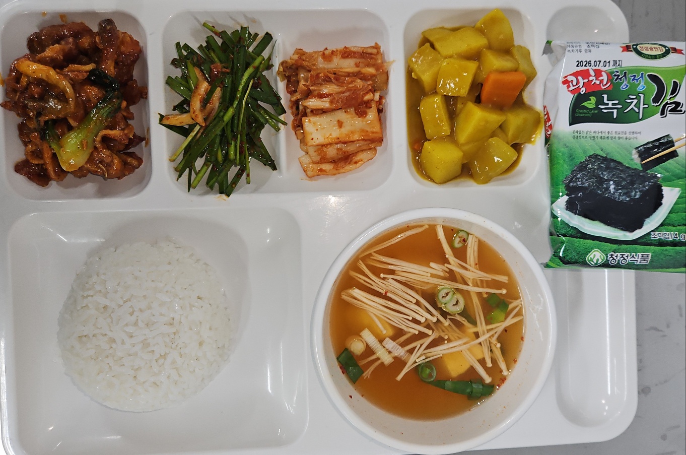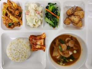 쌀 – 국내산 (현미, 찹쌀포함)/ 김치 – 배추김치 :국내산,고추가루:국내산 / 쇠고기 -국내산 ,닭고기 – 국내산 (훈제포함)/ 오리 – 국내산 (훈제포함)/ 돼지고기 – 국내산(등뼈,갈비,전지,후지,사태) 수산 – 삼치,고등어,굴비 (국내산)/오징어(국산,원양산)/ 명태,코다리(러시아산)/ 꽁치 (원양산)/낙지 (베트남산,중국산)/ 꽃게 (국내산) 날치알 (수입산), 새우살(수입산)/ 진미채 (페루산), 쥐채(원양산)/ 갈치(세네갈,모로코산)/ 가자미(수입산) 참치캔(원양산)/ 가쓰오브시(인도네시아산) 콩 – 팩두부 (수입산)/ 연두부 ,순두부 (국내산)/어묵-연육(수입산)/도토리묵가루-(수입산) *시장 수급에 따라 메뉴는 변동될수 있습니다. |