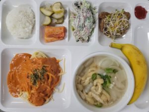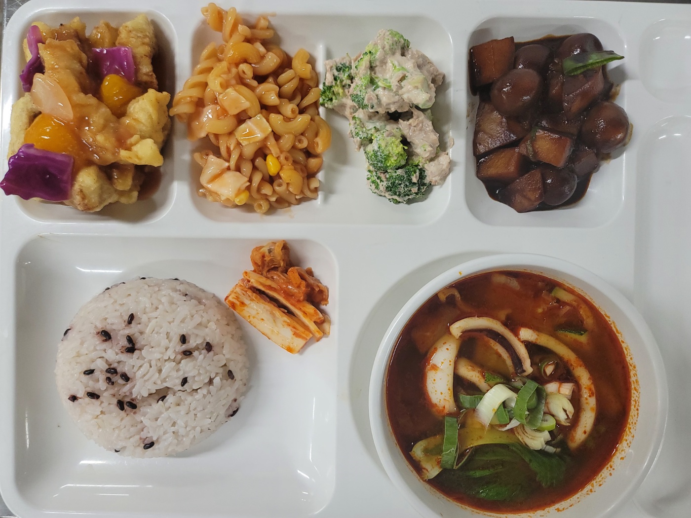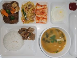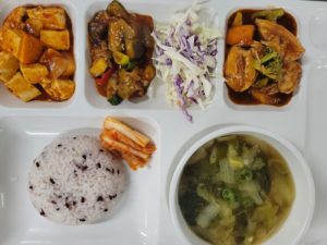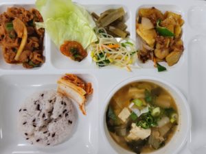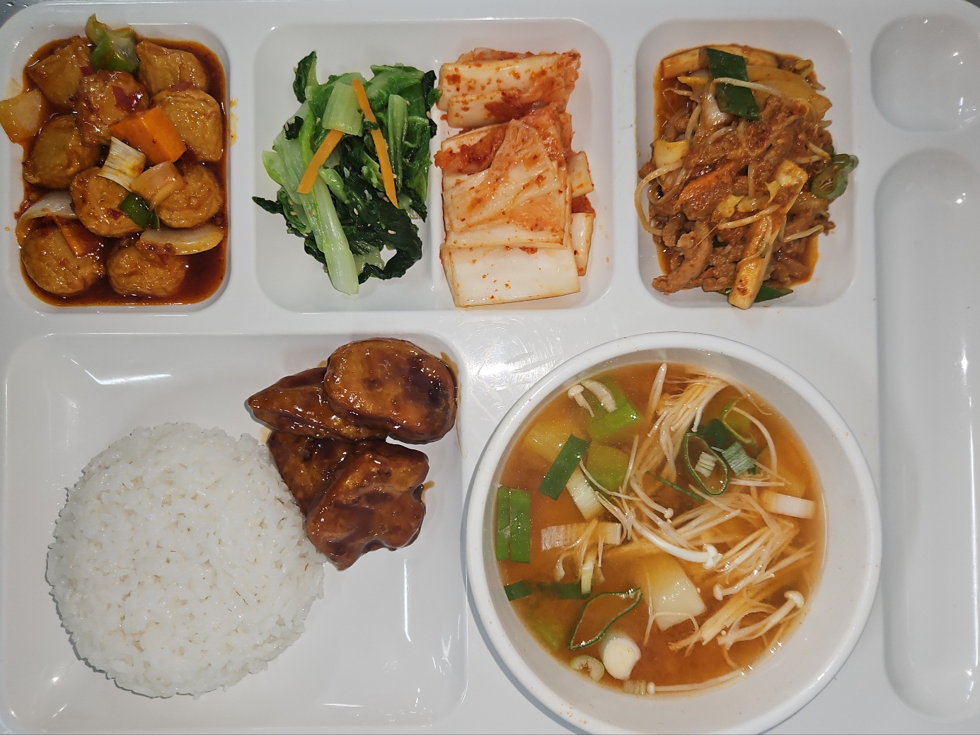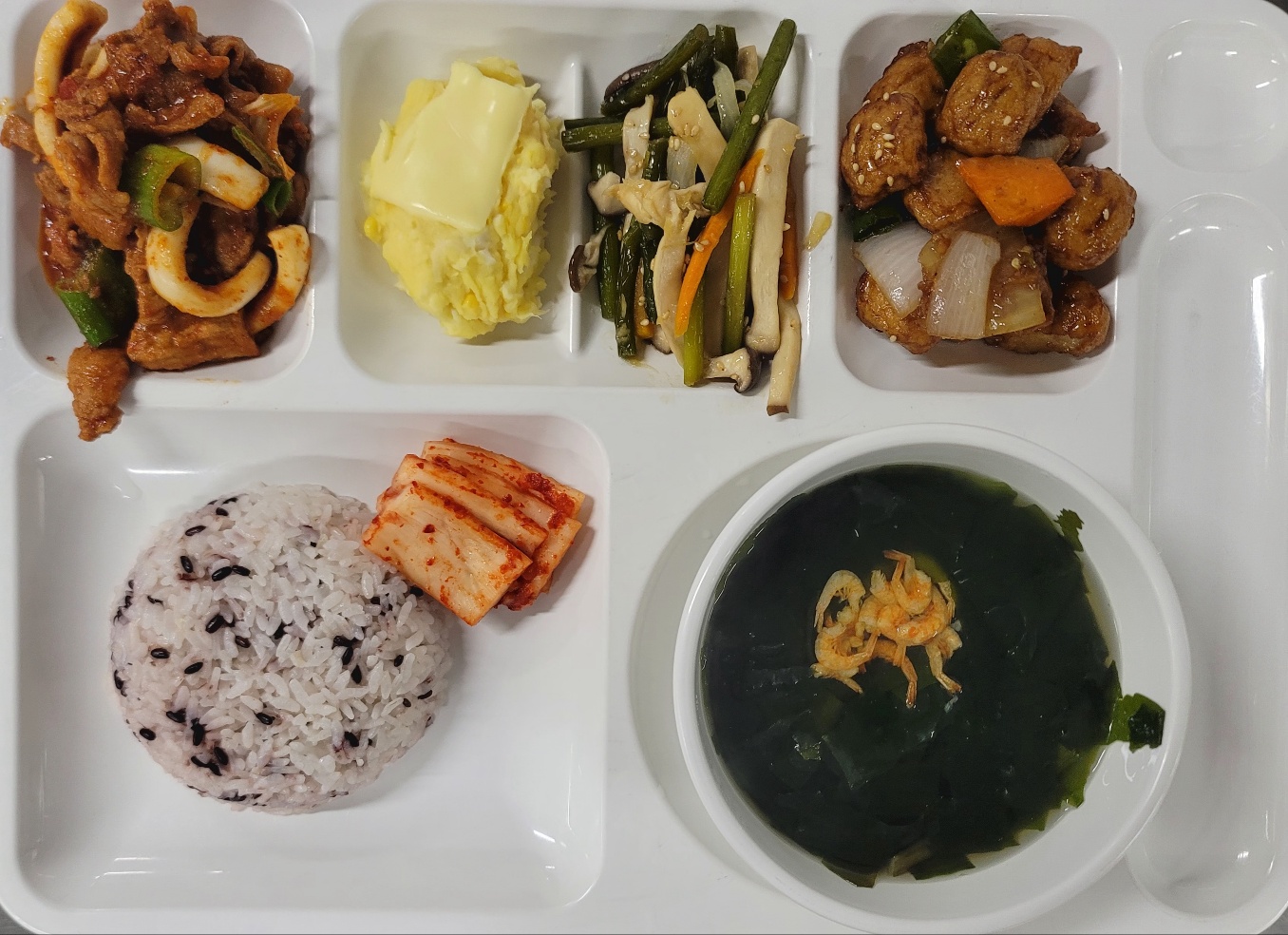 | 쌀 – 국내산 (현미, 찹쌀포함)/ 김치 – 배추김치 :국내산,고추가루:국내산 / 쇠고기 -국내산 ,닭고기 – 국내산 (훈제포함)/ 오리 – 국내산 (훈제포함)/ 돼지고기 – 국내산(등뼈,갈비,전지,후지,사태) 수산 – 삼치,고등어,굴비 (국내산)/오징어(국산,원양산)/ 명태,코다리(러시아산)/ 꽁치 (원양산)/낙지 (베트남산,중국산)/ 꽃게 (국내산) 날치알 (수입산), 새우살(수입산)/ 진미채 (페루산), 쥐채(원양산)/ 갈치(세네갈,모로코산)/ 가자미(수입산) 참치캔(원양산)/ 가쓰오브시(인도네시아산) 콩 – 팩두부 (수입산)/ 연두부 ,순두부 (국내산)/어묵-연육(수입산)/도토리묵가루-(수입산) *시장 수급에 따라 메뉴는 변동될수 있습니다. |