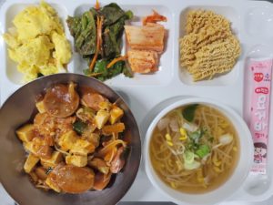 해물수제비볶음/콩나물부추무침/궁채장아찌/김치 |