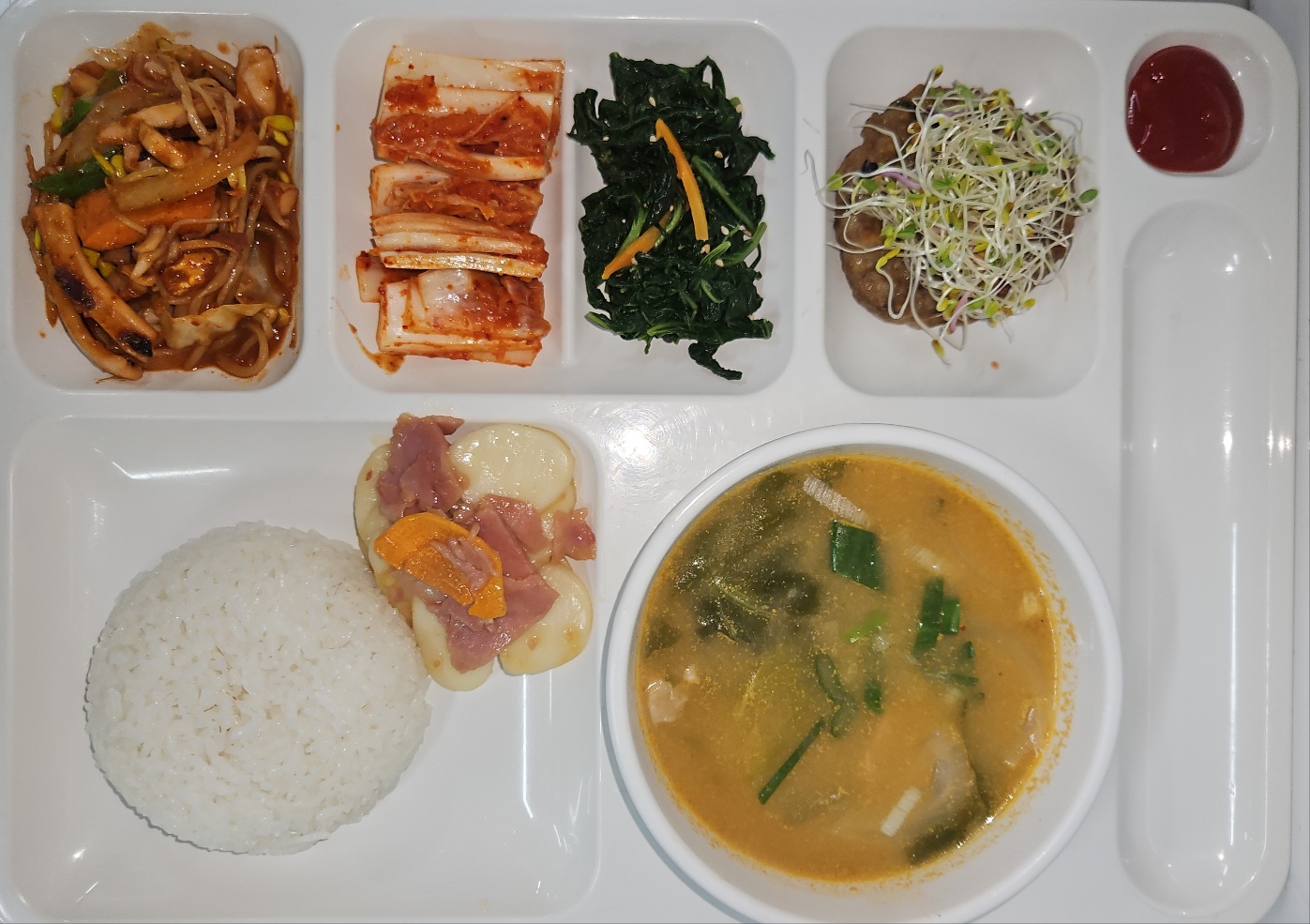 팽이버섯양념구이/콩나물무침/김치 |
