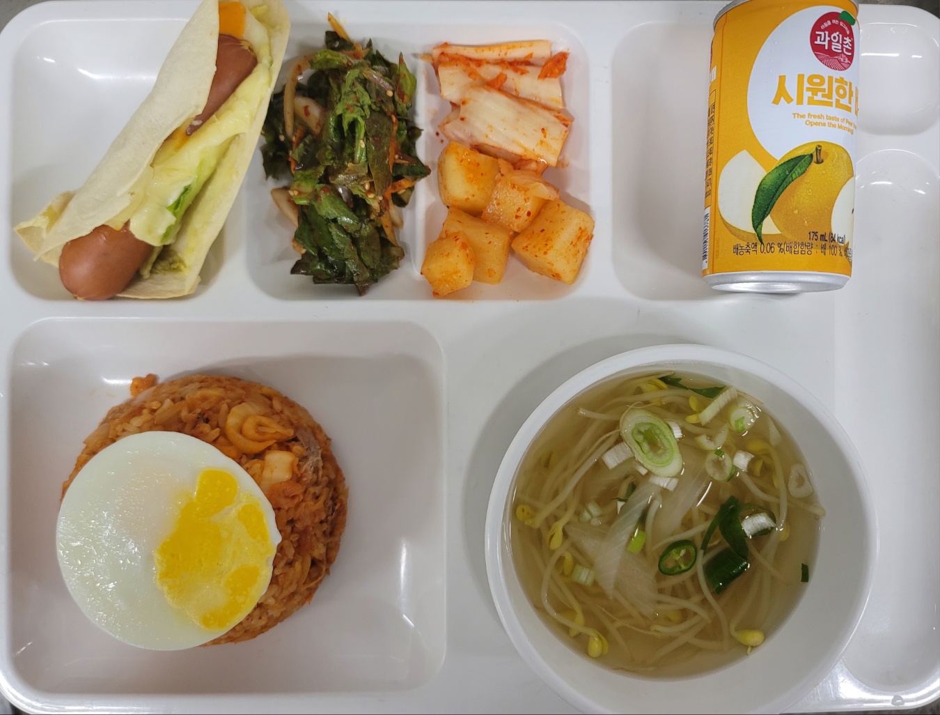 애기배추쌈장무침/삶은달걀/두유/김치 |