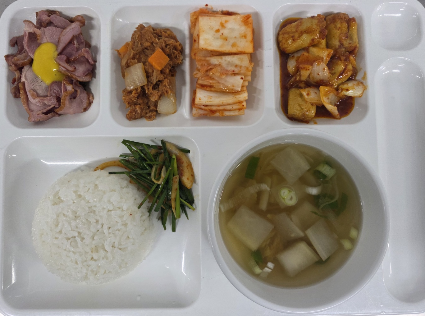 칼집소시지구이(돈육수입산)/궁채장아찌/김치 |