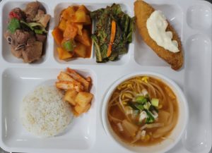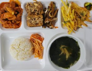 쌀 – 국내산 (현미, 찹쌀포함)/ 김치 – 배추김치 :국내산,고추가루:국내산 / 쇠고기 -국내산 ,닭고기 – 국내산 (훈제포함)/ 오리 – 국내산 (훈제포함)/ 돼지고기 – 국내산(등뼈,갈비,전지,후지,사태) 수산 – 삼치,고등어,굴비 (국내산)/오징어(국산,원양산)/ 명태,코다리(러시아산)/ 꽁치 (원양산)/낙지 (베트남산,중국산)/ 꽃게 (국내산) 날치알 (수입산), 새우살(수입산)/ 진미채 (페루산), 쥐채(원양산)/ 갈치(세네갈,모로코산)/ 가자미(수입산) 참치캔(원양산)/ 가쓰오브시(인도네시아산) 콩 – 팩두부 (수입산)/ 연두부 ,순두부 (국내산)/어묵-연육(수입산)/도토리묵가루-(수입산) *시장 수급에 따라 메뉴는 변동될수 있습니다. |