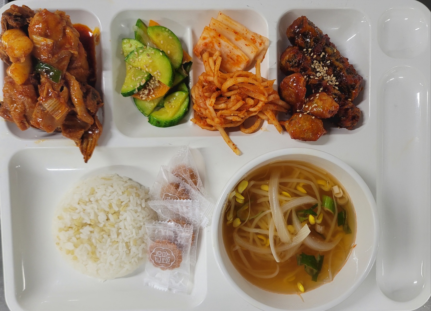 새송이짬뽕소스볶음/쥐채조림/무생채/김치 |