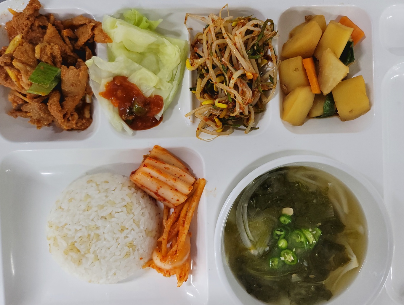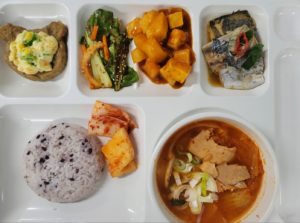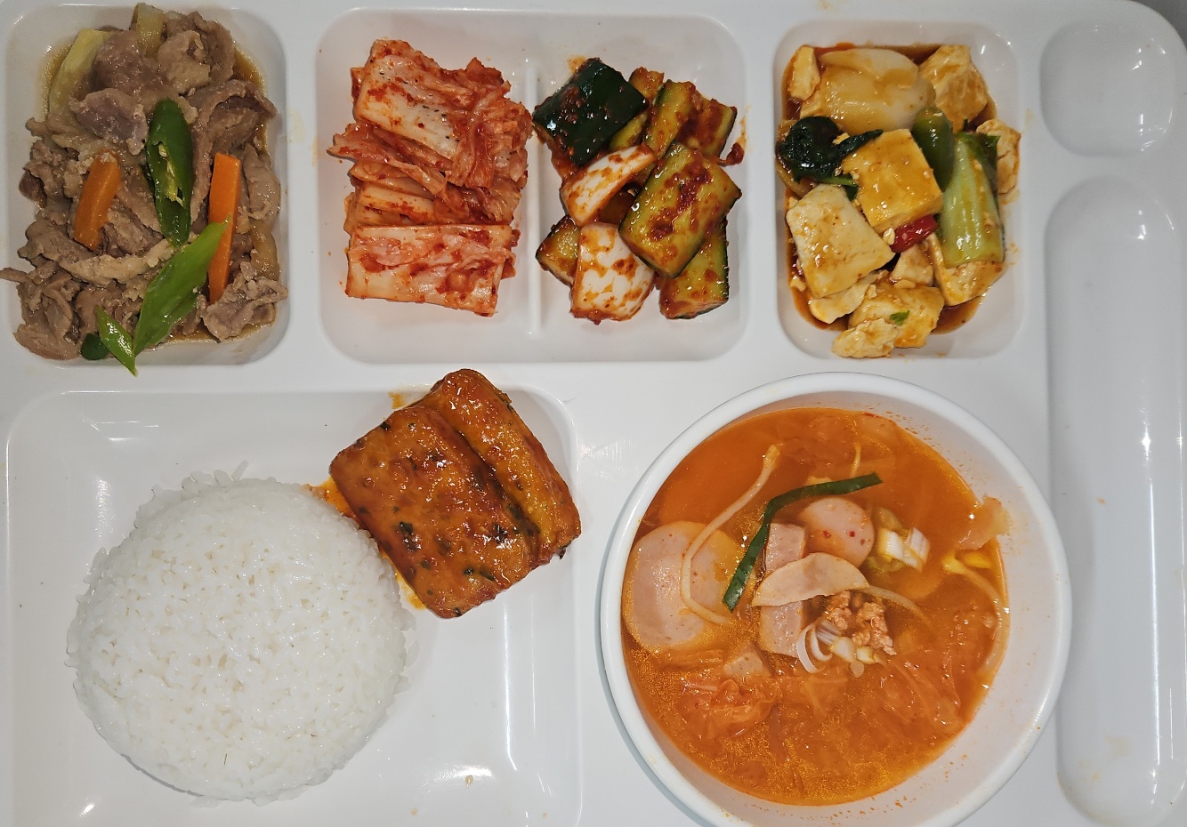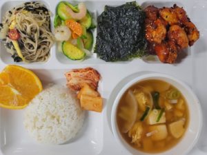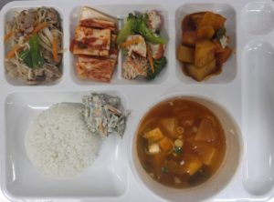 | 쌀 – 국내산 (현미, 찹쌀포함)/ 김치 – 배추김치 :국내산,고추가루:국내산 / 쇠고기 -국내산 ,닭고기 – 국내산 (훈제포함)/ 오리 – 국내산 (훈제포함)/ 돼지고기 – 국내산(등뼈,갈비,전지,후지,사태) 수산 – 삼치,고등어,굴비 (국내산)/오징어(국산,원양산)/ 명태,코다리(러시아산)/ 꽁치 (원양산)/낙지 (베트남산,중국산)/ 꽃게 (국내산) 날치알 (수입산), 새우살(수입산)/ 진미채 (페루산), 쥐채(원양산)/ 갈치(세네갈,모로코산)/ 가자미(수입산) 참치캔(원양산)/ 가쓰오브시(인도네시아산) 콩 – 팩두부 (수입산)/ 연두부 ,순두부 (국내산)/어묵-연육(수입산)/도토리묵가루-(수입산) *시장 수급에 따라 메뉴는 변동될수 있습니다. |