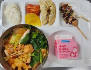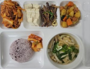 | 쌀 – 국내산 (현미, 찹쌀포함)/ 김치 – 배추김치 :국내산,고추가루:국내산 / 쇠고기 -국내산 ,닭고기 – 국내산 (훈제포함)/ 오리 – 국내산 (훈제포함)/ 돼지고기 – 국내산(등뼈,갈비,전지,후지,사태) 수산 – 삼치,고등어,굴비 (국내산)/오징어(국산,원양산)/ 명태,코다리(러시아산)/ 꽁치 (원양산)/낙지 (베트남산,중국산)/ 꽃게 (국내산) 날치알 (수입산), 새우살(수입산)/ 진미채 (페루산), 쥐채(원양산)/ 갈치(세네갈,모로코산)/ 가자미(수입산) 참치캔(원양산)/ 가쓰오브시(인도네시아산) 콩 – 팩두부 (수입산)/ 연두부 ,순두부 (국내산)/어묵-연육(수입산)/도토리묵가루-(수입산) *시장 수급에 따라 메뉴는 변동될수 있습니다. |