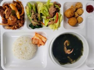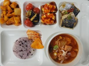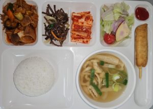 | 쌀 – 국내산 (현미, 찹쌀포함)/ 김치 – 배추김치 :국내산,고추가루:국내산 / 쇠고기 -국내산 ,닭고기 – 국내산 (훈제포함)/ 오리 – 국내산 (훈제포함)/ 돼지고기 – 국내산(등뼈,갈비,전지,후지,사태) 수산 – 삼치,고등어,굴비 (국내산)/오징어(국산,원양산)/ 명태,코다리(러시아산)/ 꽁치 (원양산)/낙지 (베트남산,중국산)/ 꽃게 (국내산) 날치알 (수입산), 새우살(수입산)/ 진미채 (페루산), 쥐채(원양산)/ 갈치(세네갈,모로코산)/ 가자미(수입산) 참치캔(원양산)/ 가쓰오브시(인도네시아산) 콩 – 팩두부 (수입산)/ 연두부 ,순두부 (국내산)/어묵-연육(수입산)/도토리묵가루-(수입산) *시장 수급에 따라 메뉴는 변동될수 있습니다. |