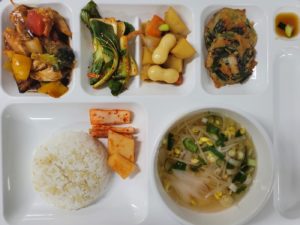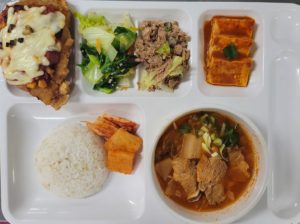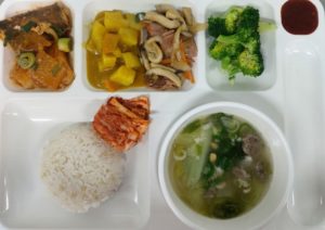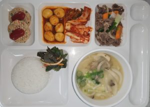 | 쌀 – 국내산 (현미, 찹쌀포함)/ 김치 – 배추김치 :국내산,고추가루:국내산 / 쇠고기 -국내산 ,닭고기 – 국내산 (훈제포함)/ 오리 – 국내산 (훈제포함)/ 돼지고기 – 국내산(등뼈,갈비,전지,후지,사태) 수산 – 삼치,고등어,굴비 (국내산)/오징어(국산,원양산)/ 명태,코다리(러시아산)/ 꽁치 (원양산)/낙지 (베트남산,중국산)/ 꽃게 (국내산) 날치알 (수입산), 새우살(수입산)/ 진미채 (페루산), 쥐채(원양산)/ 갈치(세네갈,모로코산)/ 가자미(수입산) 참치캔(원양산)/ 가쓰오브시(인도네시아산) 콩 – 팩두부 (수입산)/ 연두부 ,순두부 (국내산)/어묵-연육(수입산)/도토리묵가루-(수입산) *시장 수급에 따라 메뉴는 변동될수 있습니다. |