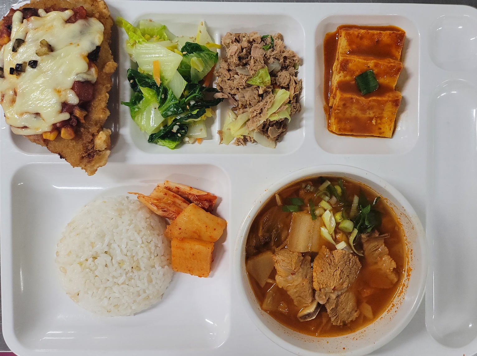 참치양배추볶음/시금치나물/김치 |