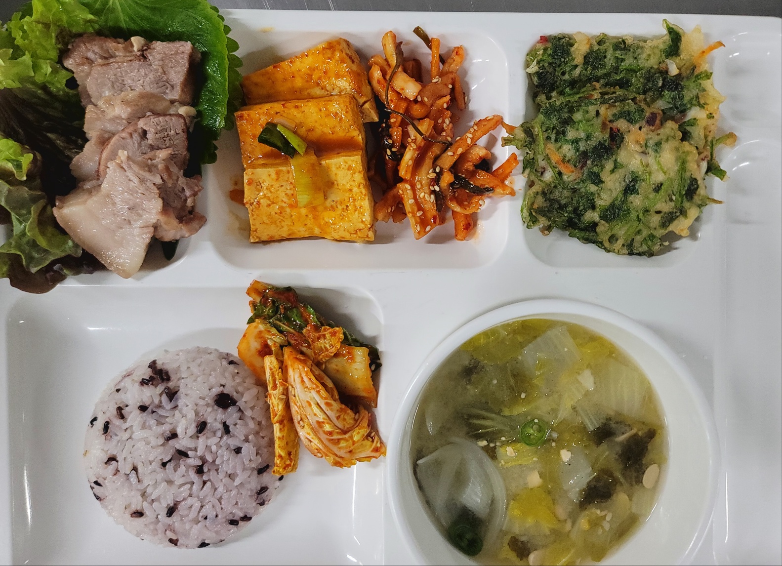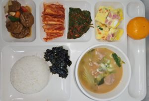 | 쌀 – 국내산 (현미, 찹쌀포함)/ 김치 – 배추김치 :국내산,고추가루:국내산 / 쇠고기 -국내산 ,닭고기 – 국내산 (훈제포함)/ 오리 – 국내산 (훈제포함)/ 돼지고기 – 국내산(등뼈,갈비,전지,후지,사태) 수산 – 삼치,고등어,굴비 (국내산)/오징어(국산,원양산)/ 명태,코다리(러시아산)/ 꽁치 (원양산)/낙지 (베트남산,중국산)/ 꽃게 (국내산) 날치알 (수입산), 새우살(수입산)/ 진미채 (페루산), 쥐채(원양산)/ 갈치(세네갈,모로코산)/ 가자미(수입산) 참치캔(원양산)/ 가쓰오브시(인도네시아산) 콩 – 팩두부 (수입산)/ 연두부 ,순두부 (국내산)/어묵-연육(수입산)/도토리묵가루-(수입산) *시장 수급에 따라 메뉴는 변동될수 있습니다. |