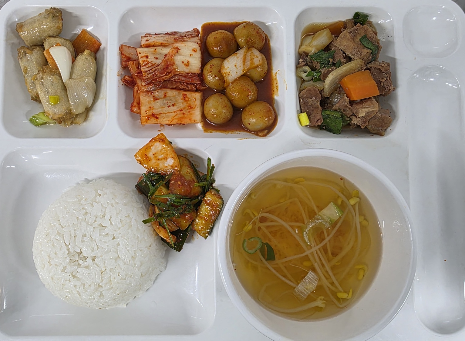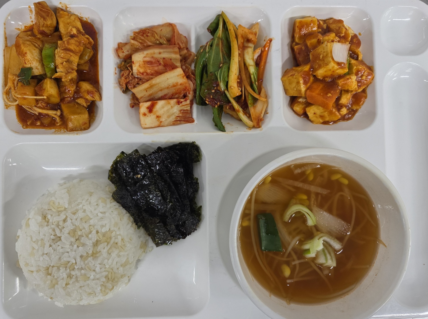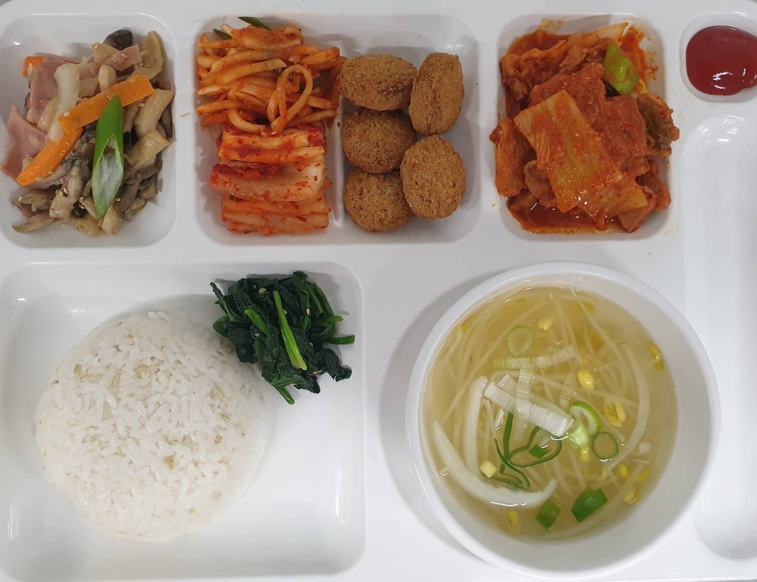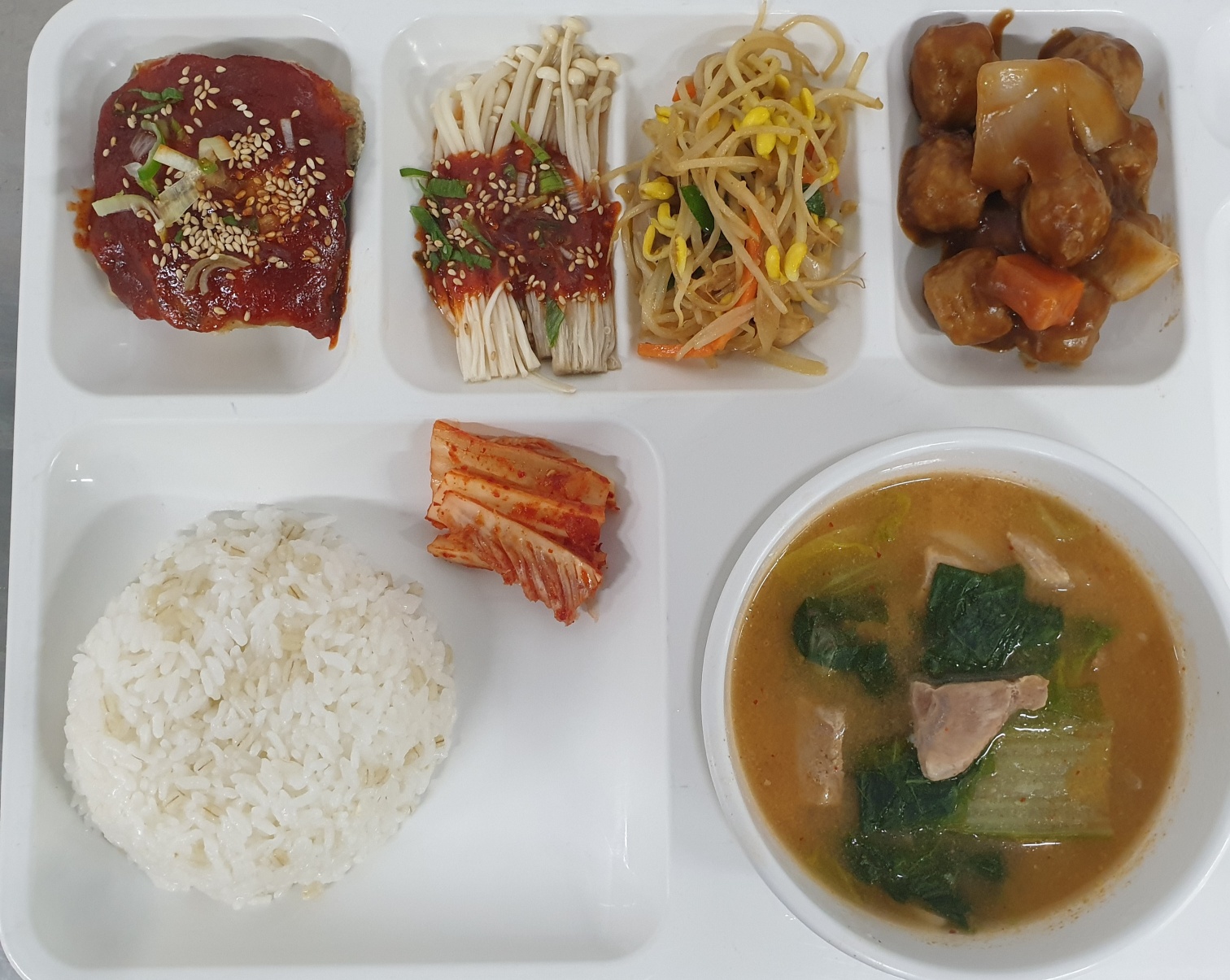 팽이버섯양념구이/콩나물야채볶음/김치 |