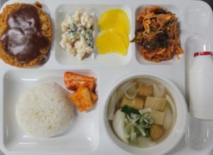 | 쌀 – 국내산 (현미, 찹쌀포함)/ 김치 – 배추김치 :국내산,고추가루:국내산 / 쇠고기 -국내산 ,닭고기 – 국내산 (훈제포함)/ 오리 – 국내산 (훈제포함)/ 돼지고기 – 국내산(등뼈,갈비,전지,후지,사태) 수산 – 삼치,고등어,굴비 (국내산)/오징어(국산,원양산)/ 명태,코다리(러시아산)/ 꽁치 (원양산)/낙지 (베트남산,중국산)/ 꽃게 (국내산) 날치알 (수입산), 새우살(수입산)/ 진미채 (페루산), 쥐채(원양산)/ 갈치(세네갈,모로코산)/ 가자미(수입산) 참치캔(원양산)/ 가쓰오브시(인도네시아산) 콩 – 팩두부 (수입산)/ 연두부 ,순두부 (국내산)/어묵-연육(수입산)/도토리묵가루-(수입산) *시장 수급에 따라 메뉴는 변동될수 있습니다. |