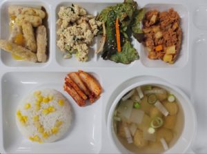 | 쌀 – 국내산 (현미, 찹쌀포함)/ 김치 – 배추김치 :국내산,고추가루:국내산 / 쇠고기 -국내산 ,닭고기 – 국내산 (훈제포함)/ 오리 – 국내산 (훈제포함)/ 돼지고기 – 국내산(등뼈,갈비,전지,후지,사태) 수산 – 삼치,고등어,굴비 (국내산)/오징어(국산,원양산)/ 명태,코다리(러시아산)/ 꽁치 (원양산)/낙지 (베트남산,중국산)/ 꽃게 (국내산) 날치알 (수입산), 새우살(수입산)/ 진미채 (페루산), 쥐채(원양산)/ 갈치(세네갈,모로코산)/ 가자미(수입산) 참치캔(원양산)/ 가쓰오브시(인도네시아산) 콩 – 팩두부 (수입산)/ 연두부 ,순두부 (국내산)/어묵-연육(수입산)/도토리묵가루-(수입산) *시장 수급에 따라 메뉴는 변동될수 있습니다. |