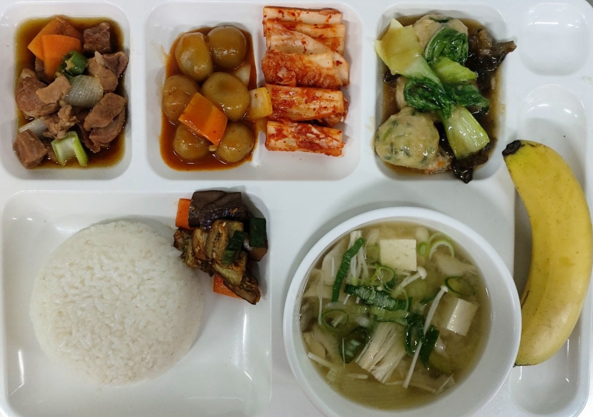 새알옹심이조림/가지구이양념무침/바나나/김치 |
