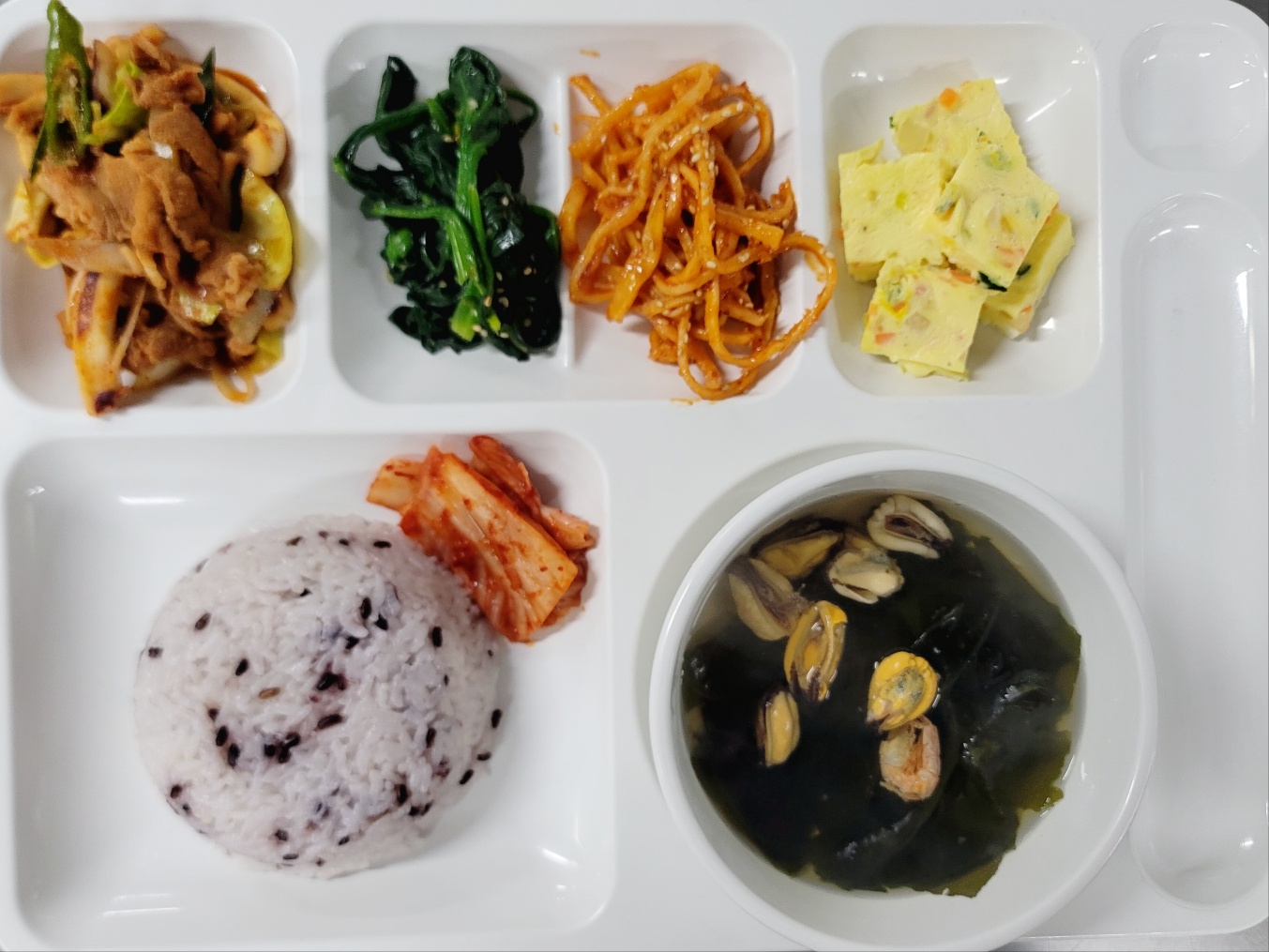 진미채조림/시금치나물/김치 |