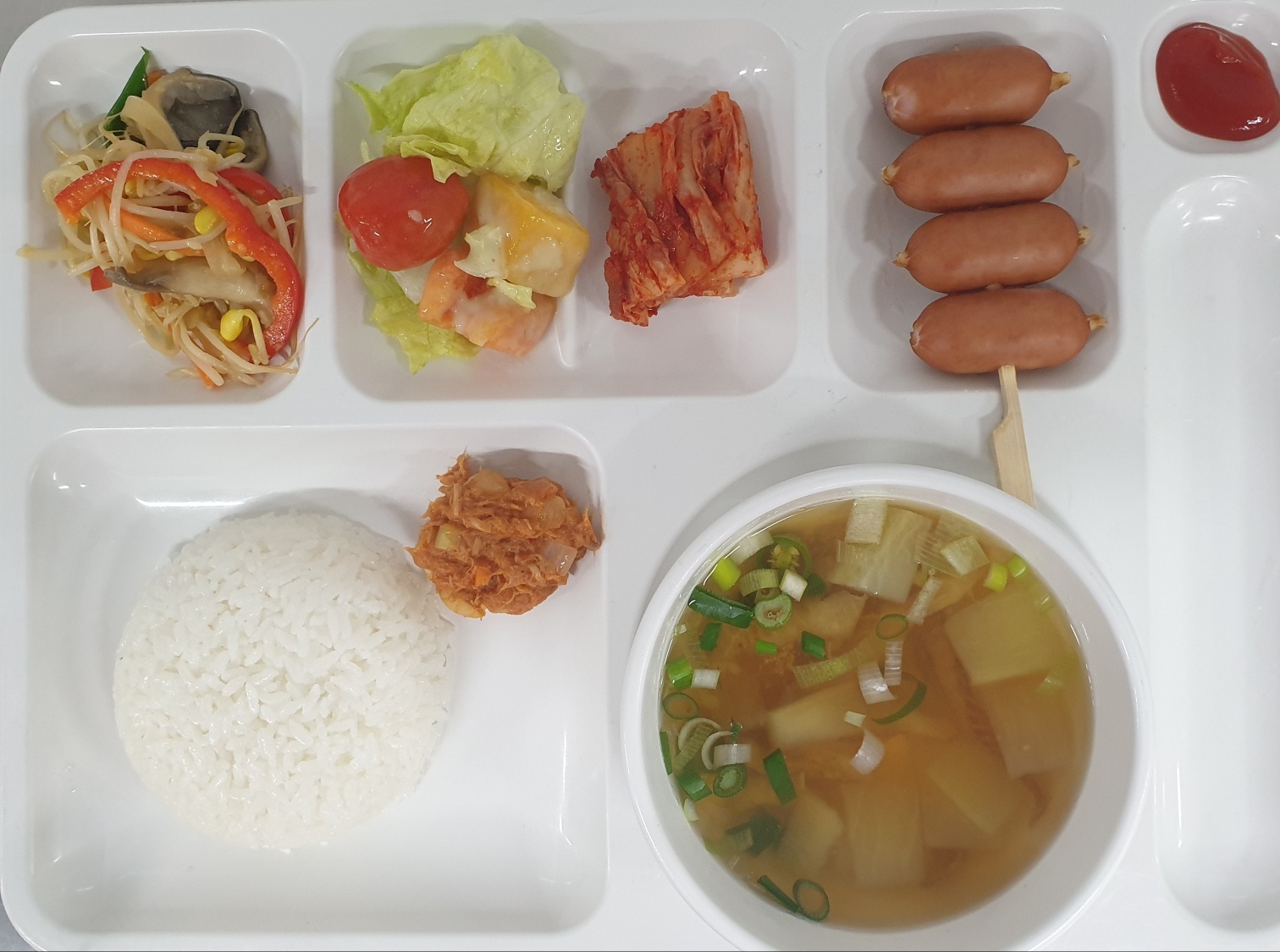 콩나물야채볶음/양상추과일샐럿/김치 |