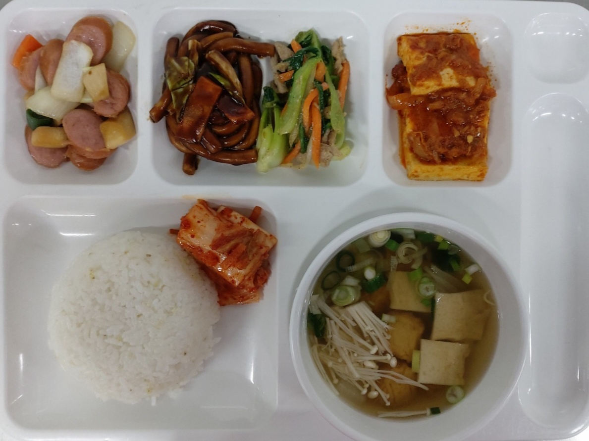 새송이햄조림/청경채고기볶음/김치 |