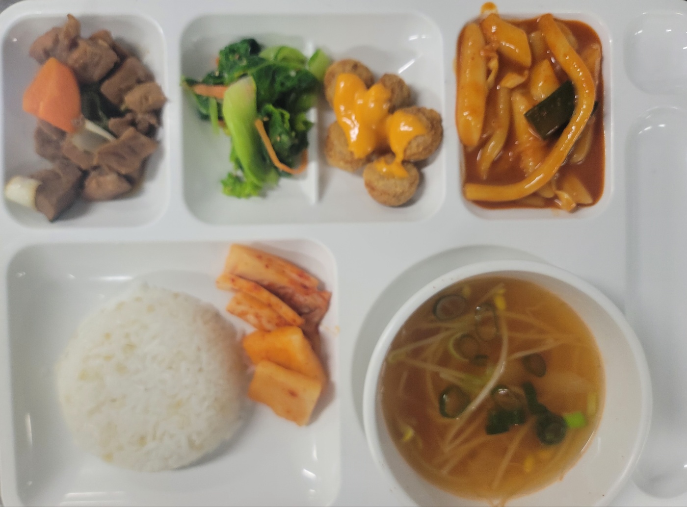 오징어볼/얼갈이나물/김치 |
