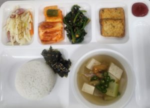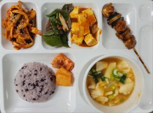 | 쌀 – 국내산 (현미, 찹쌀포함)/ 김치 – 배추김치 :국내산,고추가루:국내산 / 쇠고기 -국내산 ,닭고기 – 국내산 (훈제포함)/ 오리 – 국내산 (훈제포함)/ 돼지고기 – 국내산(등뼈,갈비,전지,후지,사태) 수산 – 삼치,고등어,굴비 (국내산)/오징어(국산,원양산)/ 명태,코다리(러시아산)/ 꽁치 (원양산)/낙지 (베트남산,중국산)/ 꽃게 (국내산) 날치알 (수입산), 새우살(수입산)/ 진미채 (페루산), 쥐채(원양산)/ 갈치(세네갈,모로코산)/ 가자미(수입산) 참치캔(원양산)/ 가쓰오브시(인도네시아산) 콩 – 팩두부 (수입산)/ 연두부 ,순두부 (국내산)/어묵-연육(수입산)/도토리묵가루-(수입산) *시장 수급에 따라 메뉴는 변동될수 있습니다. |