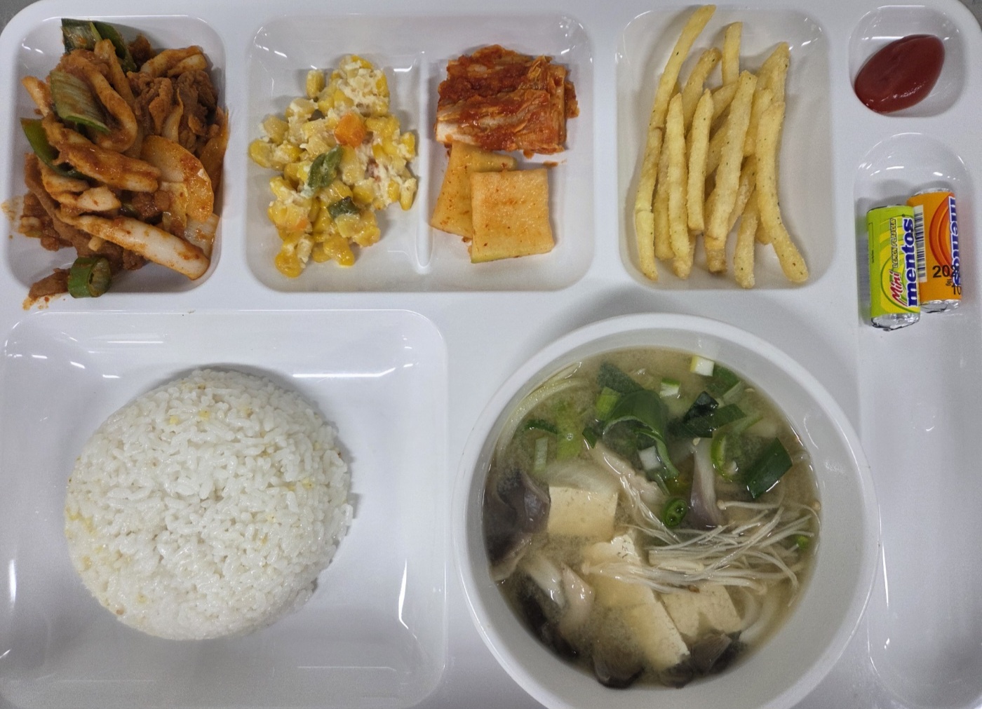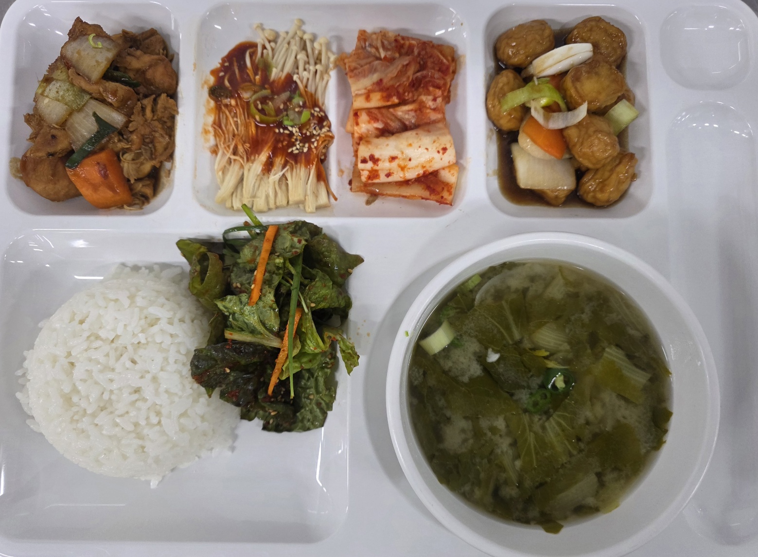 새송이표고볶음/구운김&양념간장/무생채/김치 |